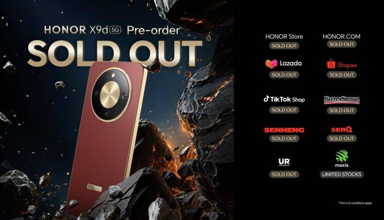 Siri HONOR X9 meneruskan mendominasi segmen telefon pintar kelas pertengahan Malaysia, dengan HONOR X9d 5G yang baru dilancarkan kini habis terjual di semua platform sebelum tempoh prapesanan berakhir pada 9 Oktober ini. Pencapaian luar biasa ini telah mengatasi rekod jualan prapesanan HONOR X9c 5G bagi tempoh sama, seterusnya mengukuhkan lagi kedudukan X9d 5G sebagai telefon pintar Pilihan Utama Malaysia di dalam kategorinya. Walaupun peranti ini tidak lagi tersedia untuk prapesanan di saluran standard, ianya masih boleh didapati di Maxis, namun stok adalah terhad.